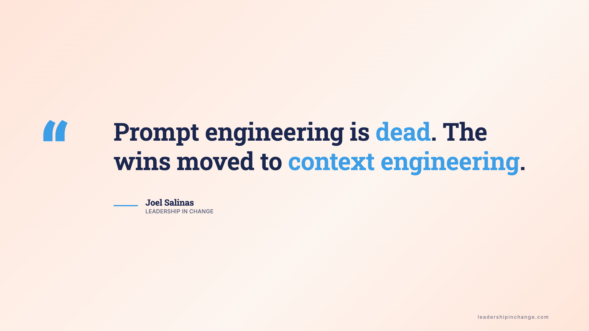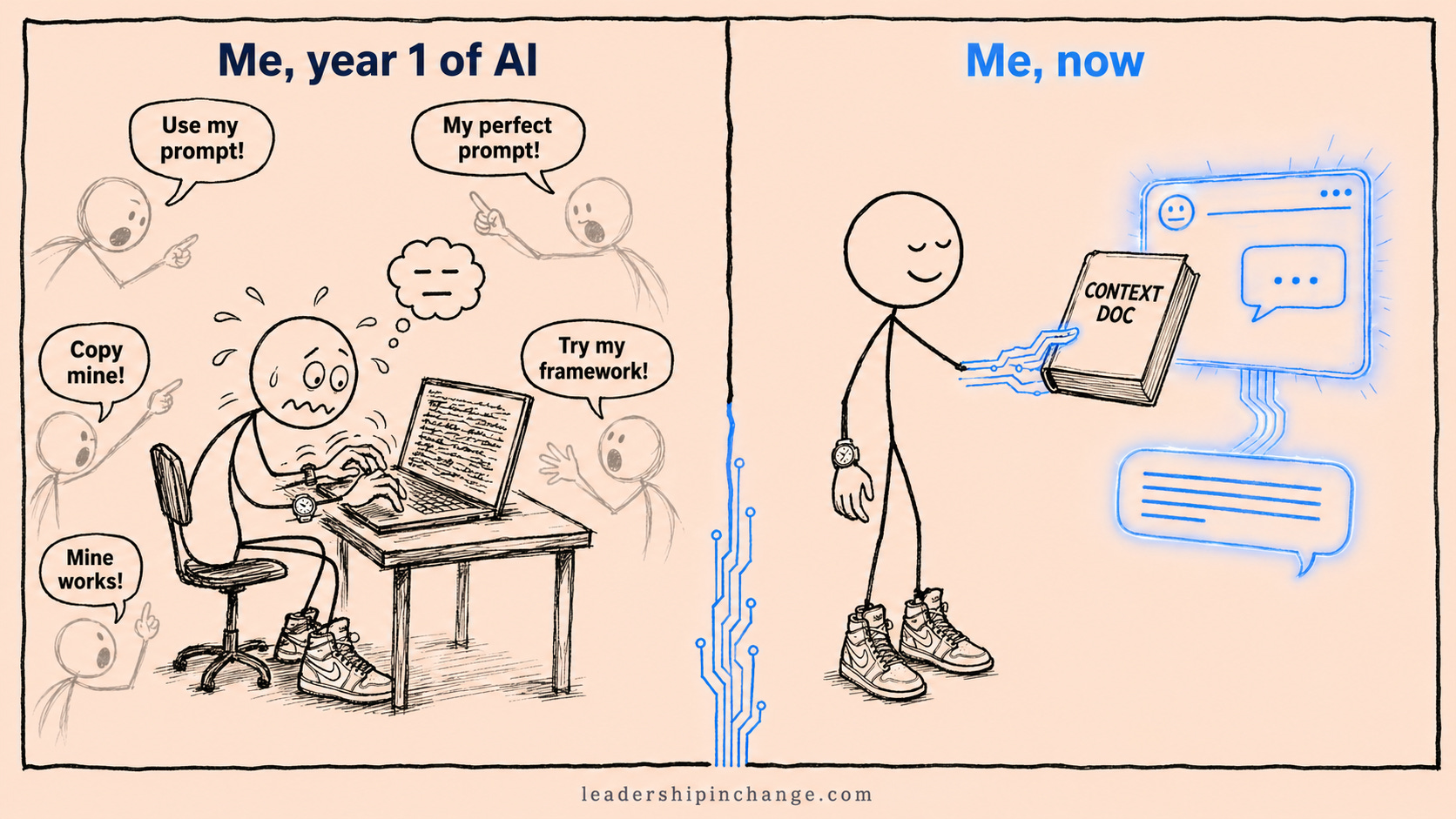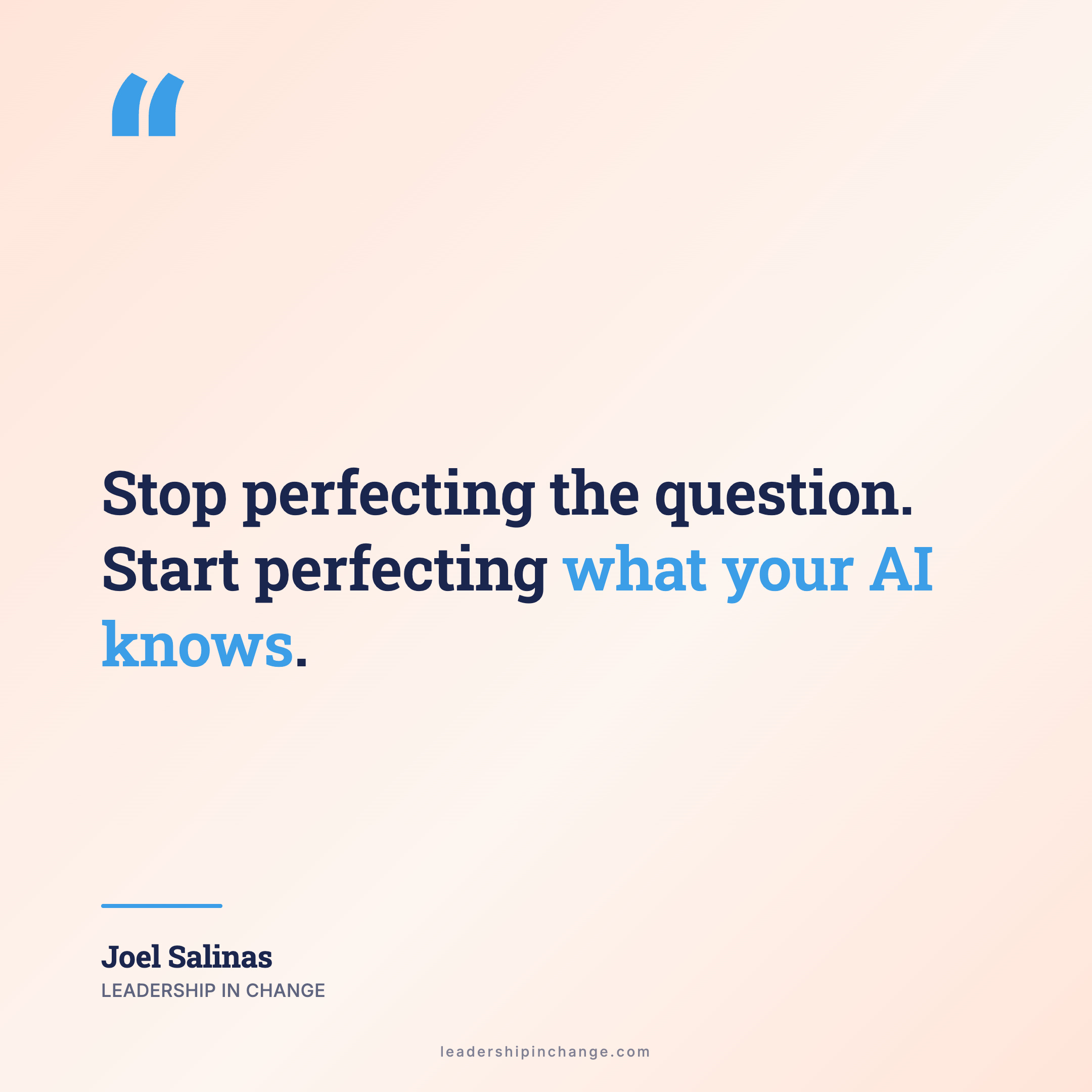 Here’s what I keep seeing… leaders are still trying to write the perfect prompt. They tweak the wording, swap synonyms, paste in “act as a senior strategist,” and wonder why the answer still reads like every other generic AI response on the internet.