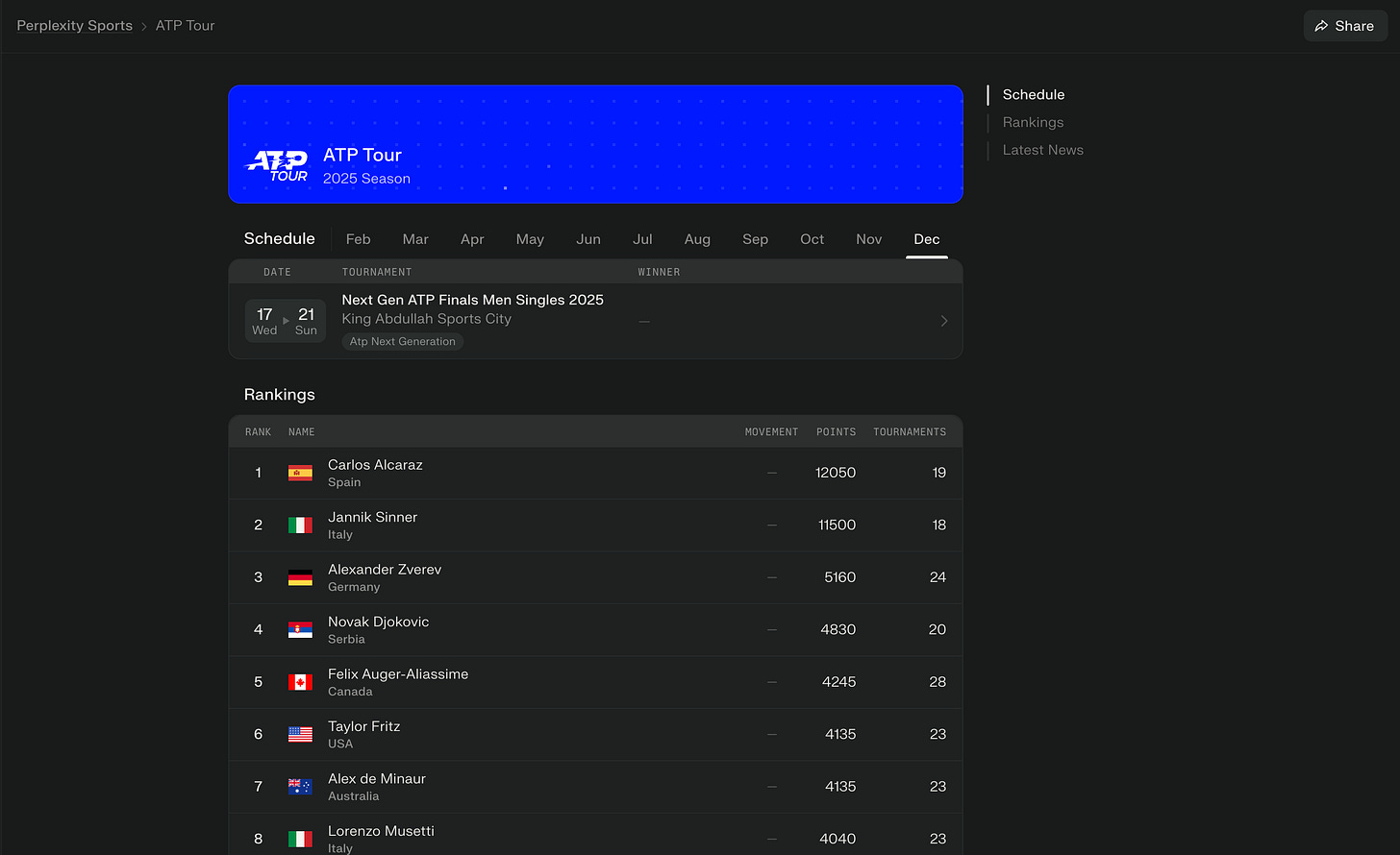 Real-time scores, player stats, and game analysis. Since I’ve spent more than half of my life in tennis, here’s a screenshot of my current ranking for ya.