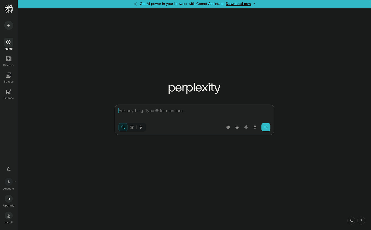 To get started, just visit perplexity.ai and you’ll see the main search interface.