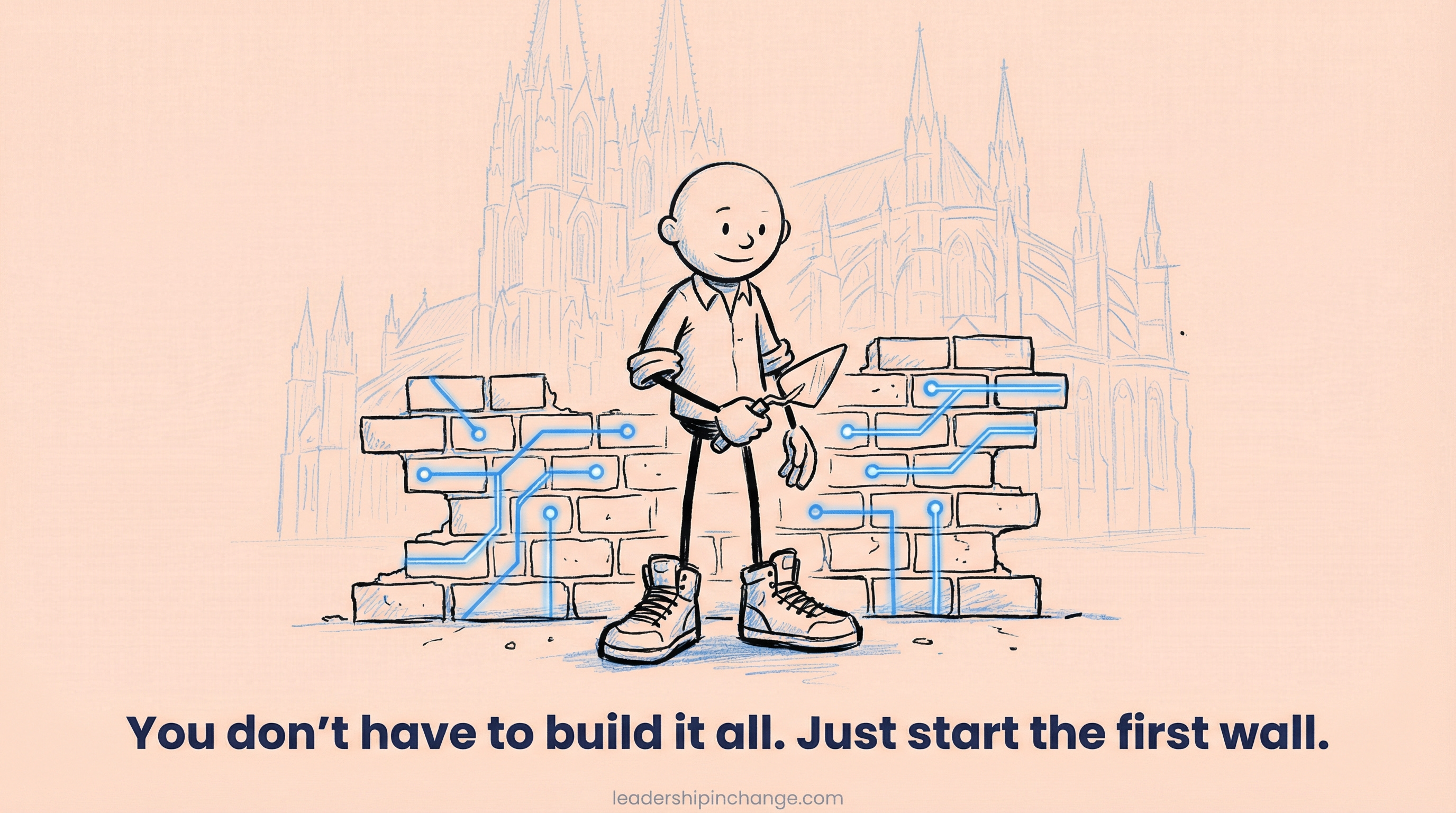 That sounds obvious until you watch what most organizations are actually trying to do with AI. They stand at the edge of a transformation they can feel coming, look at the scale of it, and either freeze or try to build the entire cathedral in one swing. Both reactions are understandable, and both leave the same result on the table: nothing built, nothing changed, nothing learned.