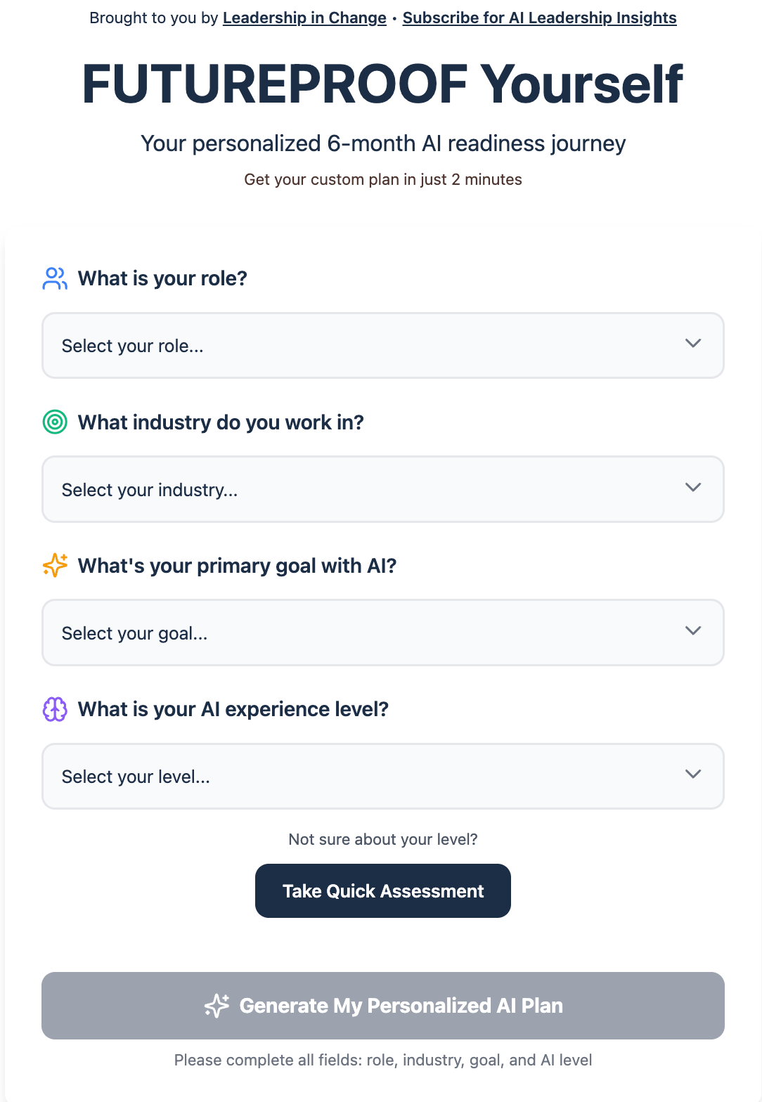 + Free tool: Create your 6-month AI growth plan—customized to your role and AI comfort level.