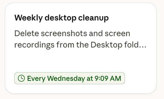 Scheduling is one of those bricks. And honestly, it’s a big one, because it changes the relationship. For the first time, Claude doesn’t just respond to you when you ask. It works for you, on its own clock, whether you’re at your desk or not.