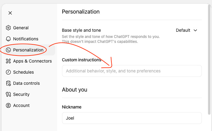 Example: I told Claude “never use jargon without defining it immediately” and “keep responses under 500 words unless I ask for more.” Now every response follows those rules without me repeating them. My preferences, my control.