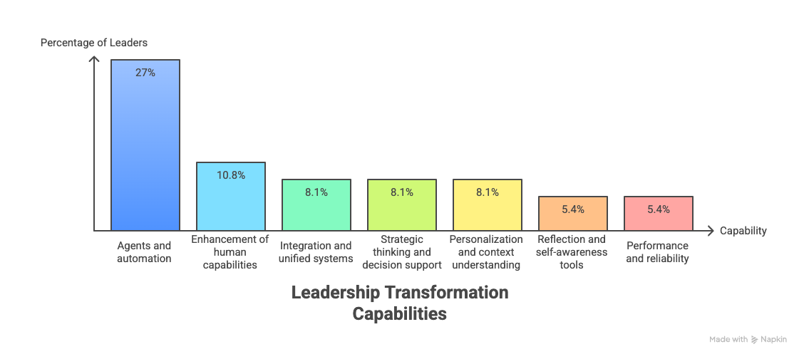 On what would transform their leadership most, 27% of leaders named the same capability: Agents and automation that handle entire workflows, not just individual tasks.
