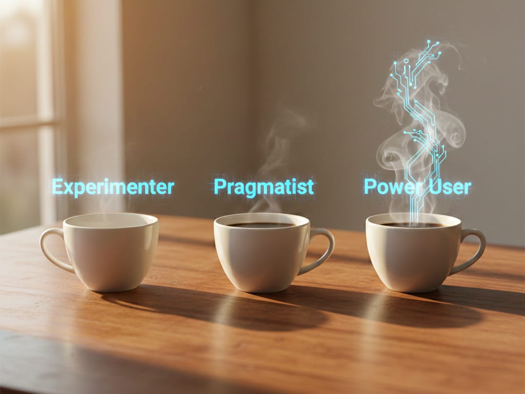 The three leadership types, Power Users (52.5%), Pragmatists (37.5%), and Experimenters (10%), are diverging, not converging. Know which type you are. Your next steps depend on it.