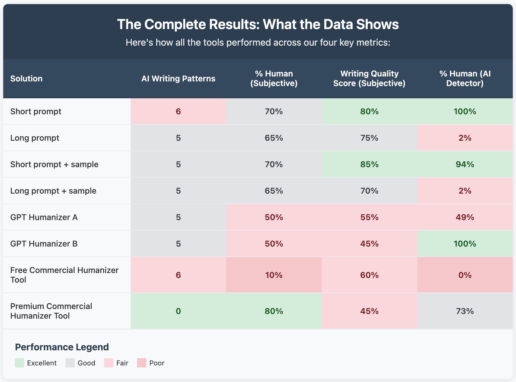 Nice post, you two! Your finding that simple, iterative prompting with a writing sample often outperforms expensive tools is both counterintuitive and practical. It suggests the real skill isn't finding a magic bullet, but in crafting a better, more collaborative process with the AI.