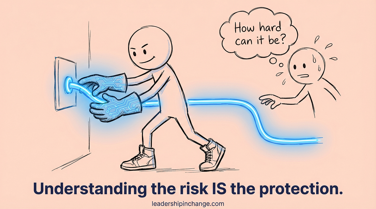 AI is at that stage right now. You learn to understand what you’re working with well enough to handle it safely, and then you use it with confidence. I’ve been thinking about this a lot, and it’s a big part of why I spend my time helping leaders build exactly this kind of judgment. Too many leaders are either paralyzed by headlines like Friedman’s or casually dismissing risks they haven’t taken the time to understand. I wrote about the thinking tools leaders need to evaluate AI honestly, and that piece is more relevant now than when I published it.