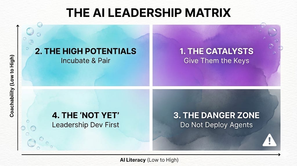 I want to be clear: this isn’t about labeling people as “bad.” It’s about recognizing that some leaders need different support before they’re ready to manage AI. Pushing agents onto someone who isn’t ready doesn’t help them. It sets them up to fail.